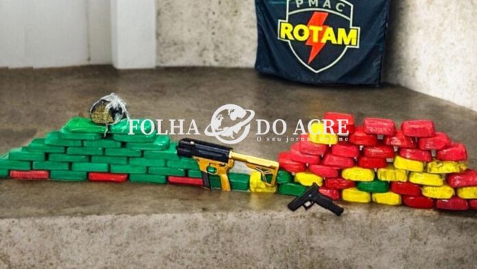 Na busca veicular, os militares encontraram dois sacos de fibras no banco traseiro. Ao verificar o conteúdo, foi descoberto 68 tijolos de substâncias ilícitas análogas a cocaína, pesando aproximadamente 70kg das drogas, além de 250 gramas de skunk.