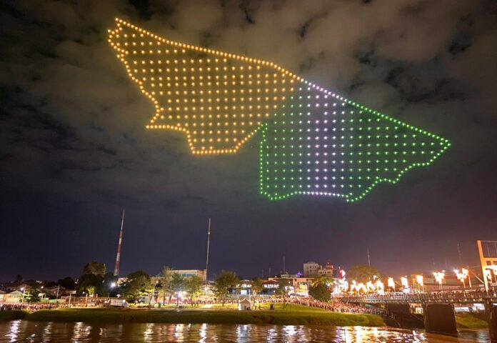 O show de drones promovido na noite deste sábado (20), em Rio Branco, reuniu uma multidão para acompanhar o espetáculo que faz parte da programação natalina na capital acreana.
