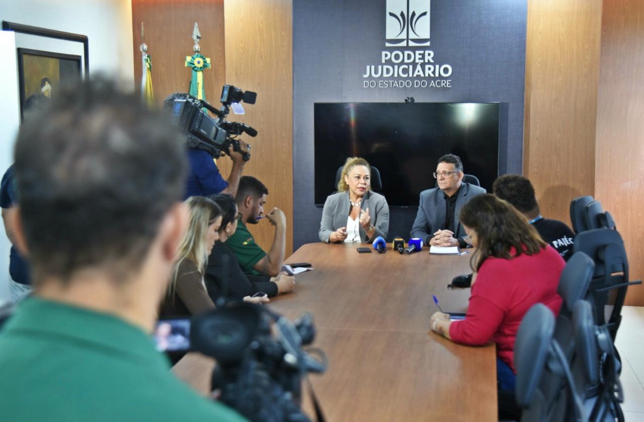 A coletiva de imprensa contou com a participação da presidente da Comissão Eleitoral de Rio Branco, juíza Luana Campos, e do secretário-geral do TJAC, Júnior Martins, que detalharam os números, reforçaram a segurança do procedimento e esclareceram dúvidas sobre o formato inédito.