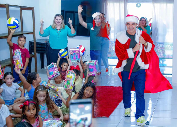 Vestido de Papai Noel, o prefeito de Cruzeiro do Sul, no interior do Acre, Zequinha Lima, realizou na manhã desta segunda-feira, 22, a entrega de brinquedos para crianças atendidas por instituições sociais no município. A ação contemplou o Educandário, a Fundação Betel, o Projeto Shalom e o Serviço de Convivência e Fortalecimento de Vínculos (SCFV).