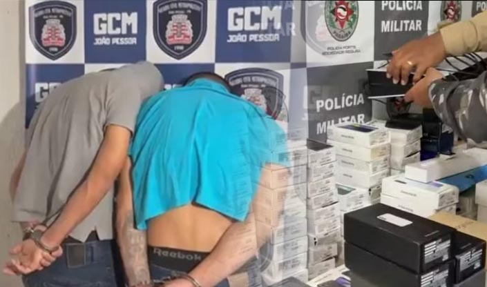 Dois homens naturais do Acre foram presos na manhã desta terça-feira (27) na Praia do Sol, em João Pessoa, suspeitos de envolvimento em um esquema de receptação de produtos furtados. Com a dupla, foram apreendidos mais de 170 celulares, além de um videogame e smartwatches.