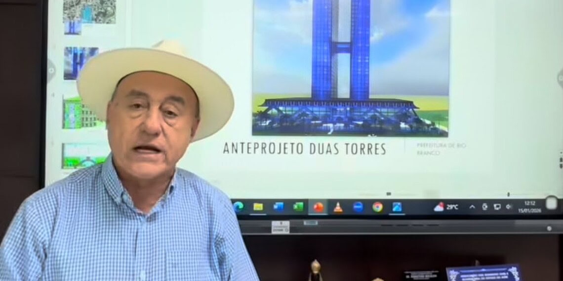 O prefeito de Rio Branco, Tião Bocalom (PL), anunciou nas redes sociais na noite de quinta-feira (15) a proposta urbanística de grande porte para o centro da capital acreana. Bocalom apresentou o projeto de construção de duas torres de edifício de 40 andares e um shopping center em área pertecente ao Rio Branco Futebol Clube.