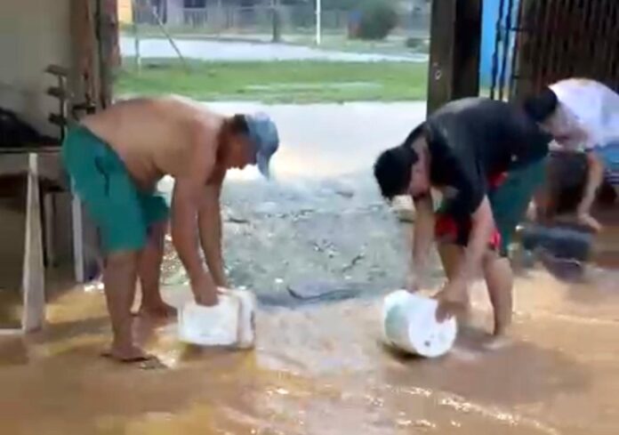 A forte chuva que caiu no final da tarde deste domingo (25) causou transtornos e prejuízos para moradores das ruas Enedina Coelho e Cordeiro, no bairro Santa Cecília, em Rio Branco.