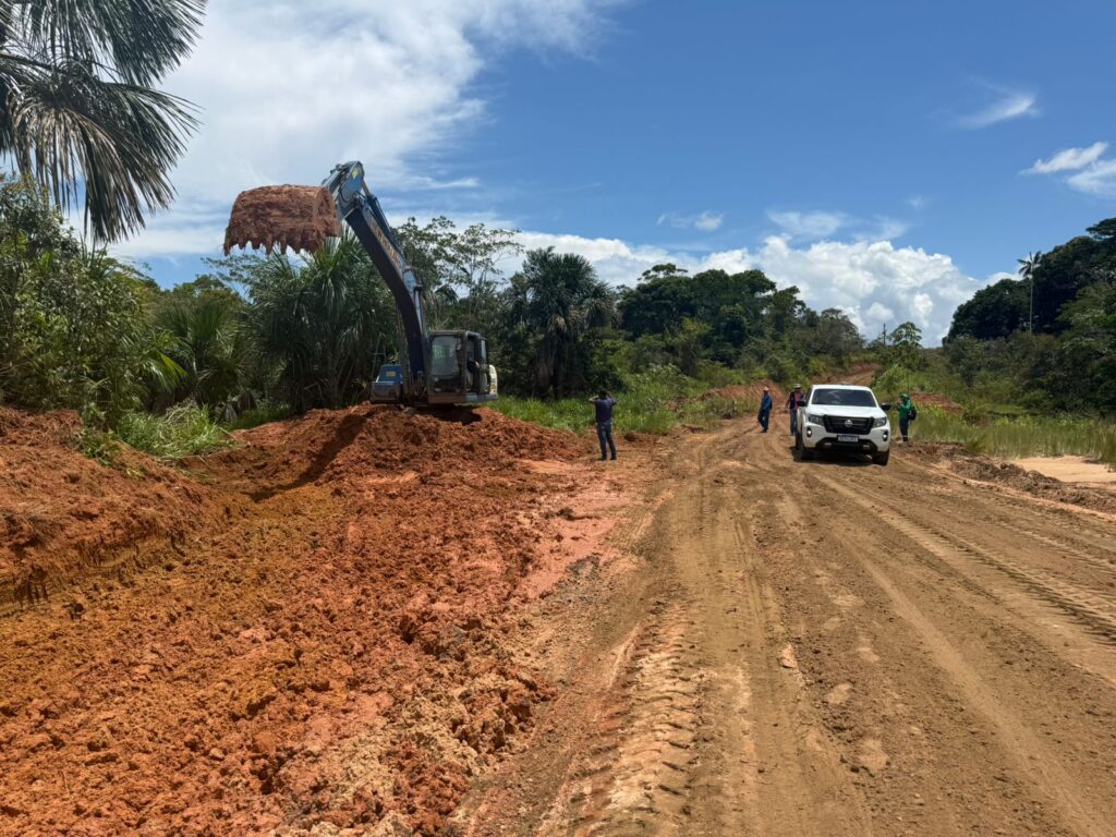 As equipes também atuam em ramais ao longo da BR-307, incluindo trechos próximos à comunidade Santa Bárbara, além do Ramal Polo da Marina, onde é executada drenagem em cerca de 800 metros do ramal. Nos ramais do Quidé, do Zacarias e do Preguiça, os serviços incluem implantação de bueiros, estivas, drenagem e aterro.
