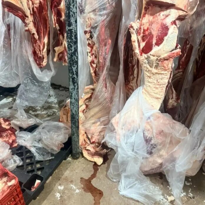 Durante a fiscalização, as equipes encontraram câmaras frias em condições precárias, com forte odor, sangue escorrendo pelo chão e carne armazenada sobre resíduos orgânicos. Também foi identificado veneno de rato armazenado junto a produtos alimentícios, incluindo leite destinado ao consumo infantil.