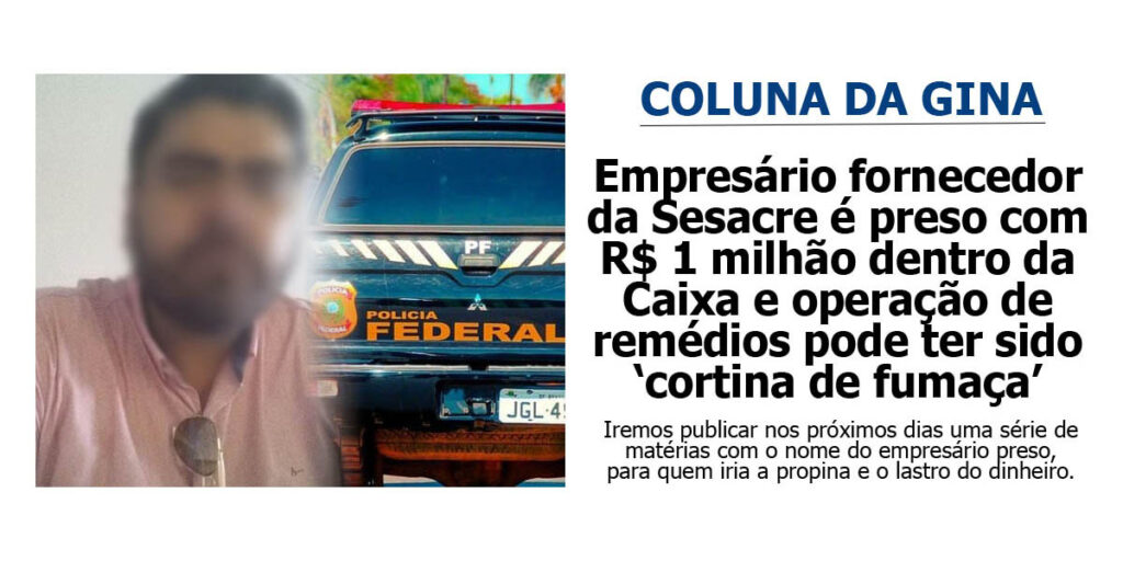 Um empresário que fornece oxigênio para a Secretaria de Saúde do Acre (Sesacre) foi preso dentro da agência da Caixa Econômica Federal quando foi sacar R$ 1 milhão de reais. Informações dão conta que o dinheiro seria para pagar propina. Gravíssimo. Pior serão as consequências.