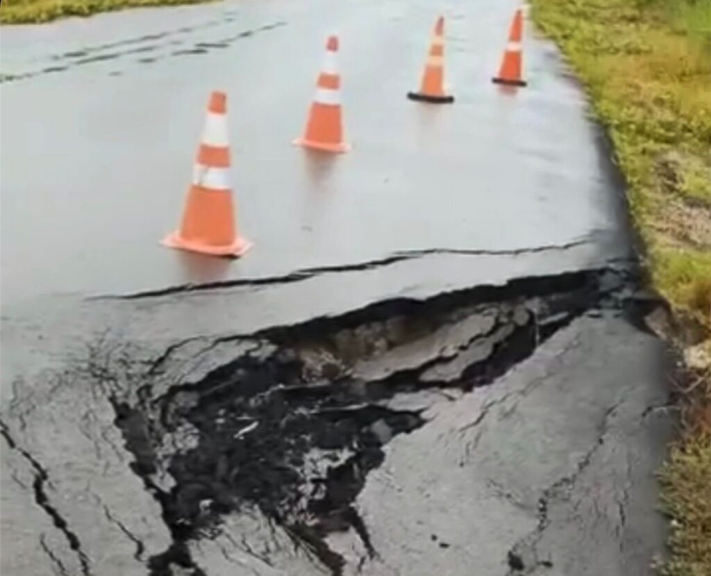 A área afetada apresenta sinais visíveis de instabilidade no solo, aumentando o risco para motoristas que trafegam diariamente pelo local.