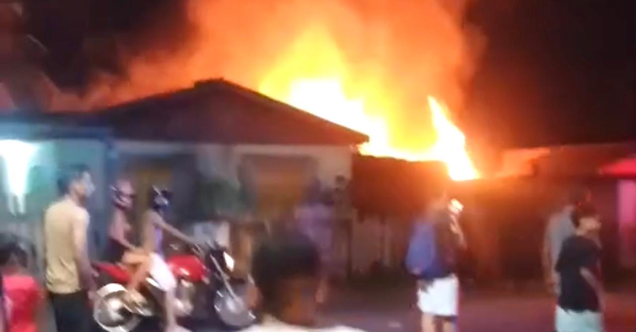 Um incêndio de grandes proporções registrado na noite desta sexta-feira (16), destruiu duas residências localizadas em um terreno na Rua Santa Bárbara, no bairro Wanderley Dantas, parte alta de Rio Branco.