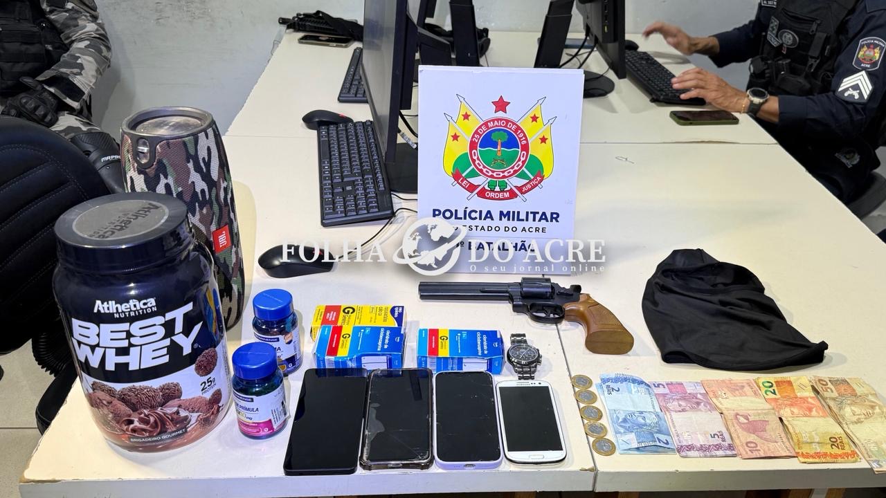 Uma arma de fogo tipo simulacro, utilizada na ação criminosa foi apreendida. A polícia informou que os detidos, apesar da pouca idade, já possuem várias passagens pela polícia por diversos crimes.