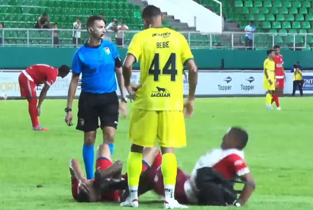 A situação aconteceu diante do árbitro Antônio Marivaldo, que conversou rapidamente com o massagista após o ocorrido e, em seguida, autorizou a continuidade da partida. Apesar do incidente, o atendimento foi realizado normalmente e o profissional deixou o campo sem qualquer tipo de punição.