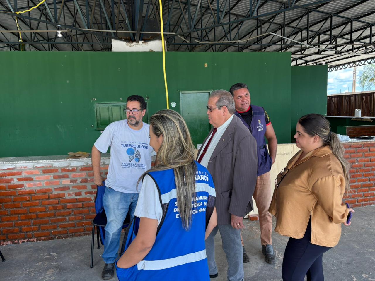 A equipe do GPRD esteve no local para verificar a estrutura disponibilizada às oito famílias acolhidas, totalizando 18 pessoas no momento, além de quatro animais. Durante a visita, foram observadas as condições relacionadas à oferta de serviços de saúde, alimentação, abastecimento de água potável, banheiros individuais, acomodações em boxes, controle de inventário e espaço destinado aos animais.