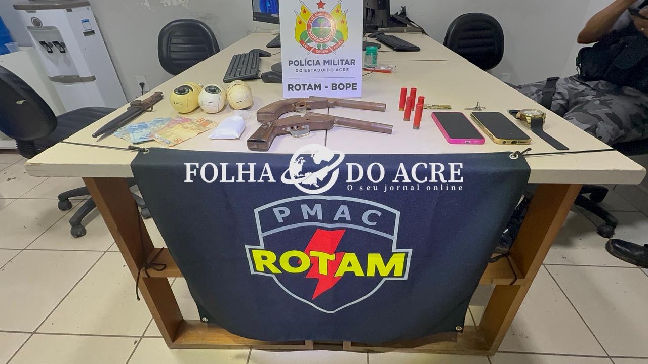 A Polícia Militar através da companhia ROTAM, do Batalhão de Operações Especiais (BOPE), com apoio da Força Tática do 2º Batalhão, prendeu três suspeitos de integrarem organização criminosa na noite da última quarta-feira (14), no Segundo Distrito de Rio Branco.
