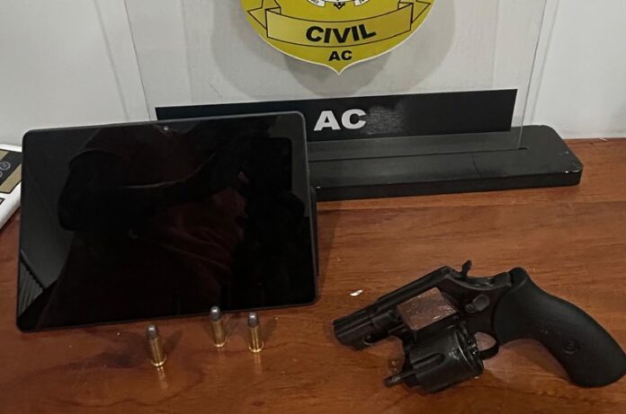 A Polícia Civil do Acre (PCAC), por meio da equipe de investigação da Delegacia-Geral de Tarauacá, prendeu em flagrante, na última segunda-feira, 26, um homem identificado pelas iniciais M.S.S., pelos crimes de posse ilegal de arma de fogo e por envolvimento no assalto à Loja Americanas do município.