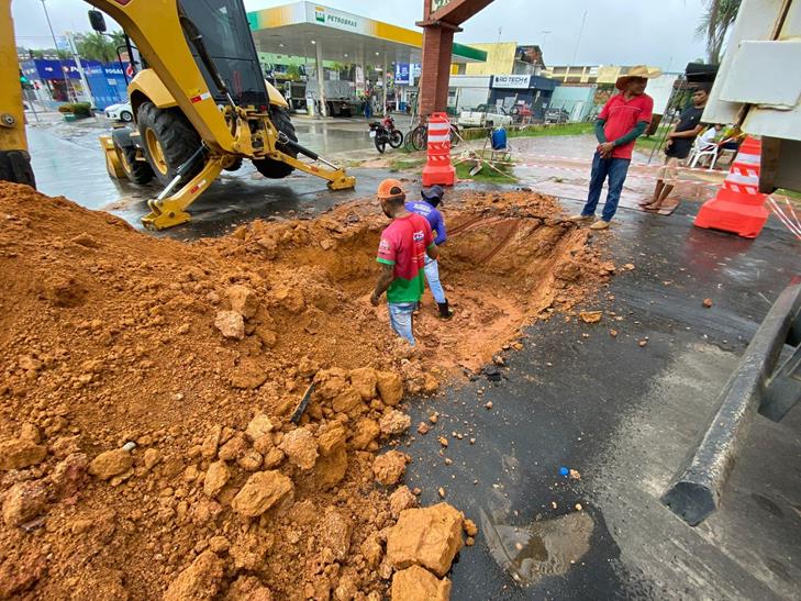 Já no bairro do Remanso, as equipes realizam a limpeza total das sarjetas e a recuperação de pontos críticos da via. “Estamos com uma frente de serviço limpando totalmente a sarjeta para que a água siga seu curso e tapando os buracos que estavam destruindo a estrada.”