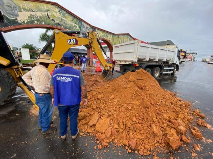 Já no bairro do Remanso, as equipes realizam a limpeza total das sarjetas e a recuperação de pontos críticos da via. “Estamos com uma frente de serviço limpando totalmente a sarjeta para que a água siga seu curso e tapando os buracos que estavam destruindo a estrada.”