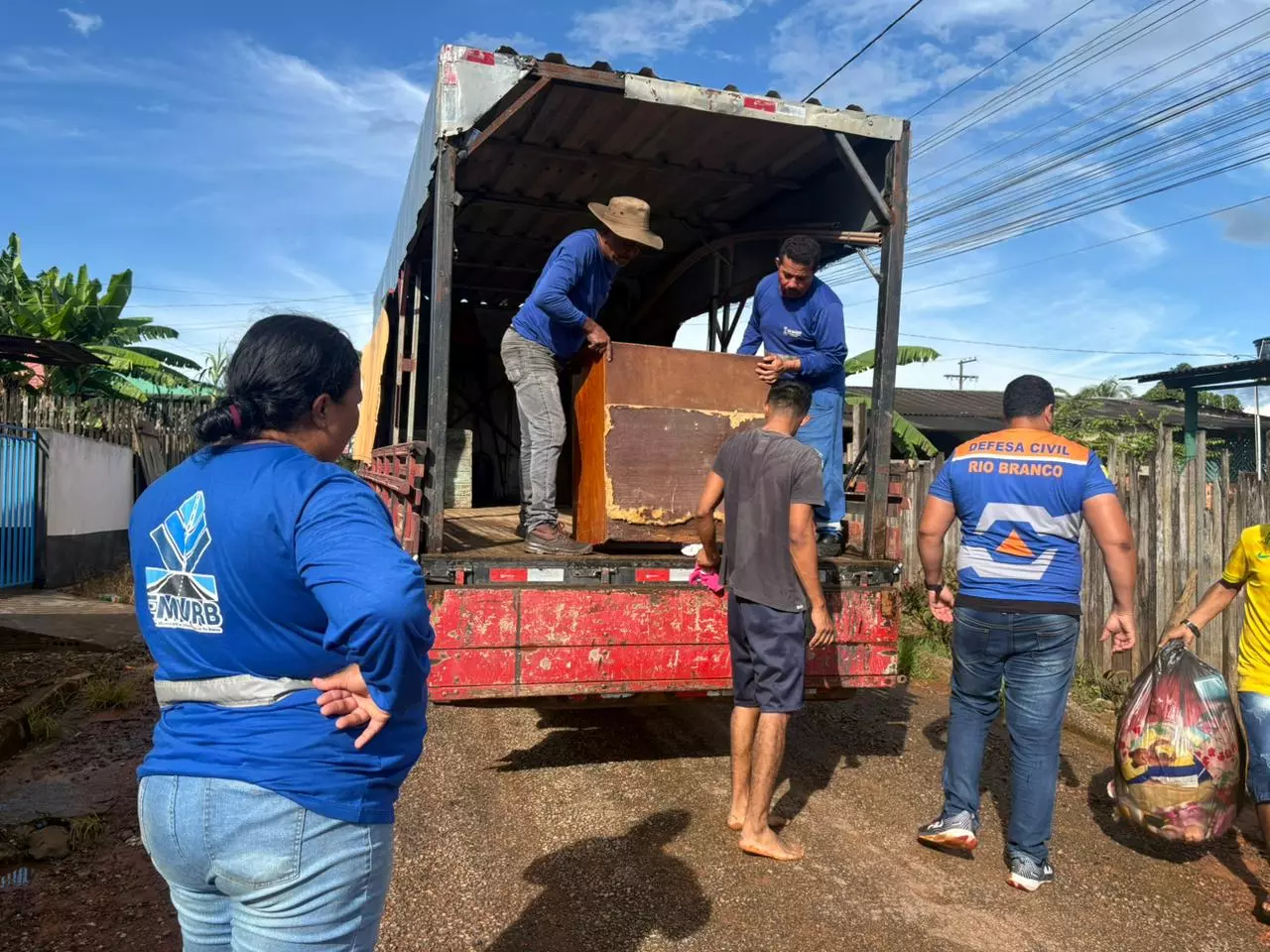 Prefeitura realiza remoção de famílias atingidas pela cheia do Rio Acre, em Rio Branco
