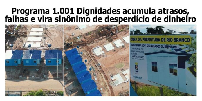 O Programa 1001 Dignidades bem que poderia mudar de nome, dado o volume de atrapalhos que acumulou desde o seu anúncio, e passar a se chamar “1001 Problemas”. Com quase três anos de lançado, o programa, que já teve o lançamento adiado, segue sendo modelo de entrave e suposto desperdício de dinheiro público. Após a Prefeitura de Rio Branco já ter pago, em dezembro de 2025, a empresa responsável pela construção dos graiders, placas construídas como uma espécie de fundação, a reportagem da Folha do Acre esteve no local de construção e constatou que o trabalho está sendo refeito, supostamente após sido mal construído. Outra denúncia dá conta que a empresa que ganhou a licitação passou parte da obra para ser executada por outra empresa.