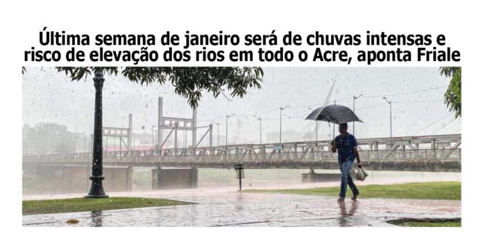 A última semana de janeiro será marcada por instabilidade climática e altos volumes de chuva em todo o Acre. A previsão foi divulgada na segunda-feira, 26, pelo pesquisador meteorológico Davi Friale, do portal O Tempo Aqui, que aponta risco de elevação significativa dos níveis dos rios, incluindo o Rio Acre, em Rio Branco, nos próximos dias.
