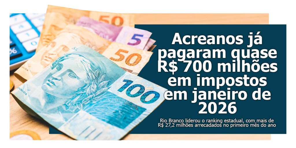 O estado do Acre arrecadou quase R$ 700 milhões de reais apenas no primeiro mês de 2026. De acordo com dados da Associação Comercial de São Paulo (ACSP), responsável pelo Impostômetro, mais de R$ 695 milhões foram pagos em tributos federais, estaduais e municipais em todo o estado.