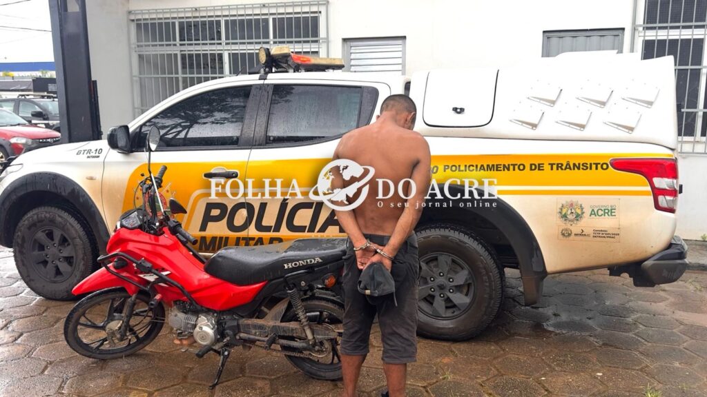 Um homem de 35 anos, monitorado pela Justiça com tornozeleira eletrônica, foi preso na manhã desta quarta-feira (25) por receptação ao ser flagrado conduzindo uma motocicleta roubada na Rua 06 de Agosto, no bairro 06 de Agosto, em Rio Branco.