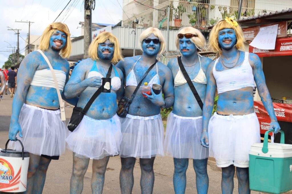 Neste domingo (15) não foi diferente. Com direito ao “Bloco dos Tadalafilo” e Smurfs, os foliões fizeram a festa com fantasias descontraídas pelas ruas do Tucumã.