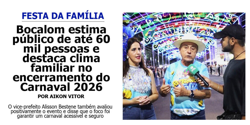 No encerramento da quinta e última noite de programação do Carnaval 2026, realizado nesta terça-feira, 17, o prefeito de Rio Branco, Tião Bocalom (PL), afirmou que a festa deste ano foi marcada por um novo formato, voltado às famílias, com espaço remodelado, reforço na segurança e melhorias na estrutura para o público.