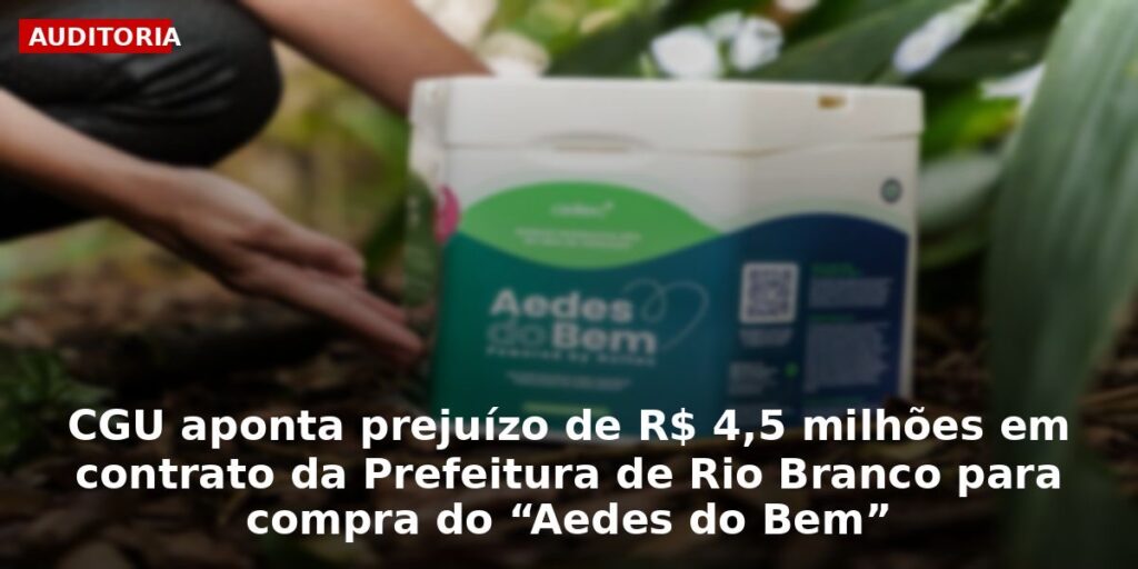 Auditoria realizada pela Controladoria-Geral da União (CGU) identificou prejuízo de R$ 4.536.000 aos cofres públicos na contratação da solução biológica “Aedes do Bem”, adquirida pela Secretaria Municipal de Saúde de Rio Branco (Semsa) por meio de inexigibilidade de licitação. A apuração teve origem em denúncia apresentada pelo vereador André Kamai (PT) em janeiro de 2025.