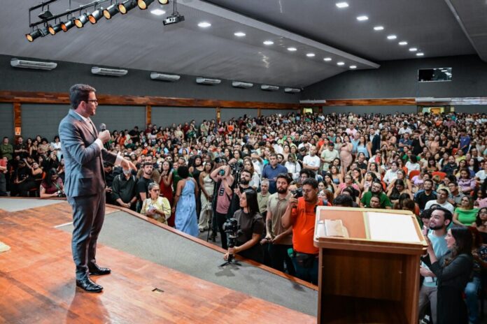 O governador Gladson Camelí afirmou, em seu discurso, sentir-se feliz e realizado por participar da quarta posse do maior concurso público da história do Acre para professores e servidores administrativos.