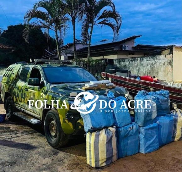 Segundo o registro policial, foram apreendidos 318 tabletes de skank, totalizando aproximadamente 336 quilos/Foto: Folha do Acre