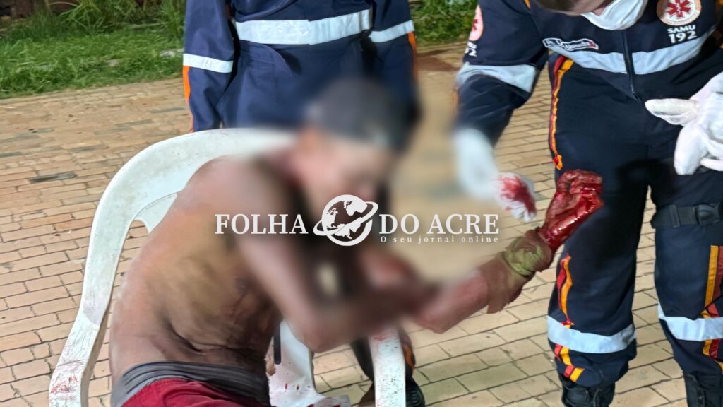 Os paramédicos chegaram ao local e encontraram a vítima sentado em uma cadeira em via pública bastante ensanguentado.