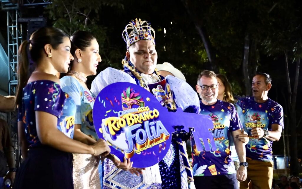Na primeira noite de Carnaval, a cidade de Rio Branco escolheu seu novo Rei Momo. Júnior D’Mônaco, candidato da Unidos do Fuxico, foi reeleito e lidera as festividades carnavalescas da cidade em 2026 pela 7ª vez.