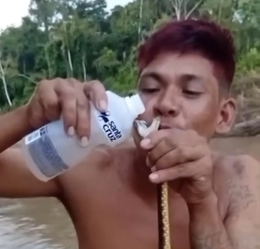 Na gravação, o homem aparece oferecendo bebida alcoólica ao animal enquanto ri. Em seguida, ele mata a cobra de forma violenta, arrancando a cabeça com uma mordida. Após o ato, arremessa o corpo na água e continua a agredir a cabeça do animal.