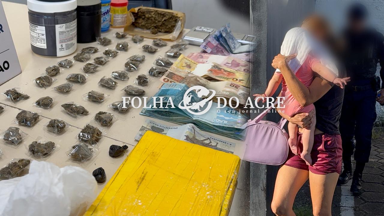 PM prende mulher com bebê em posse de drogas e grande quantia em dinheiro no Segundo Distrito de Rio Branco