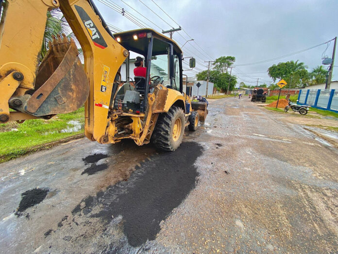 operação tapa-buracos nas principais vias e nos serviços de roçagem no bairro Boca da Alemanha, nas proximidades da Cidade da Justiça, garantindo a melhoria da mobilidade e da segurança para pedestres e motoristas.