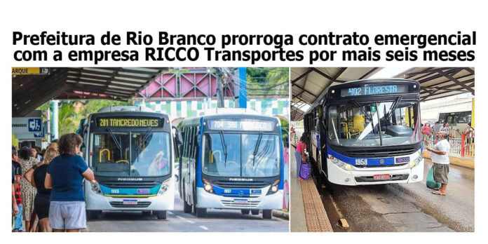 A Prefeitura de Rio Branco decidiu estender por mais seis meses o contrato emergencial com a empresa Ricco Transportes e Turismo, responsável pela operação do transporte coletivo na capital. A informação foi confirmada pelo secretário municipal de Comunicação, Ailton Oliveira, à Folha do Acre.