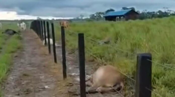 Um raio atingiu uma fazenda na zona rural de Plácido de Castro, no interior do Acre, causando a morte de várias cabeças de gado e um cavalo. O incidente ocorreu na terça-feira (10) e foi registrado em um vídeo que circula nas redes sociais, mostrando a cena chocante dos animais sem vida.