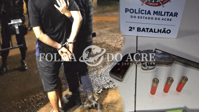 Um homem de 29 anos, identificado como Francisco da Silva Gomes, foi preso na noite do último sábado (14) no bairro Taquari, em Rio Branco, com uma faca e uma escopeta calibre .28.