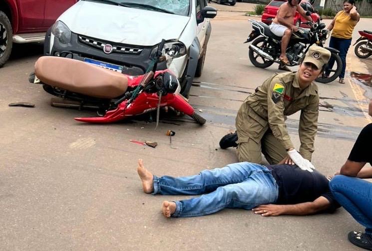 Um acidente de trânsito envolvendo um carro e uma motocicleta foi registrado na tarde desta terça-feira (18) na Rua Rui Lino, no Centro de Brasiléia, interior do Acre.