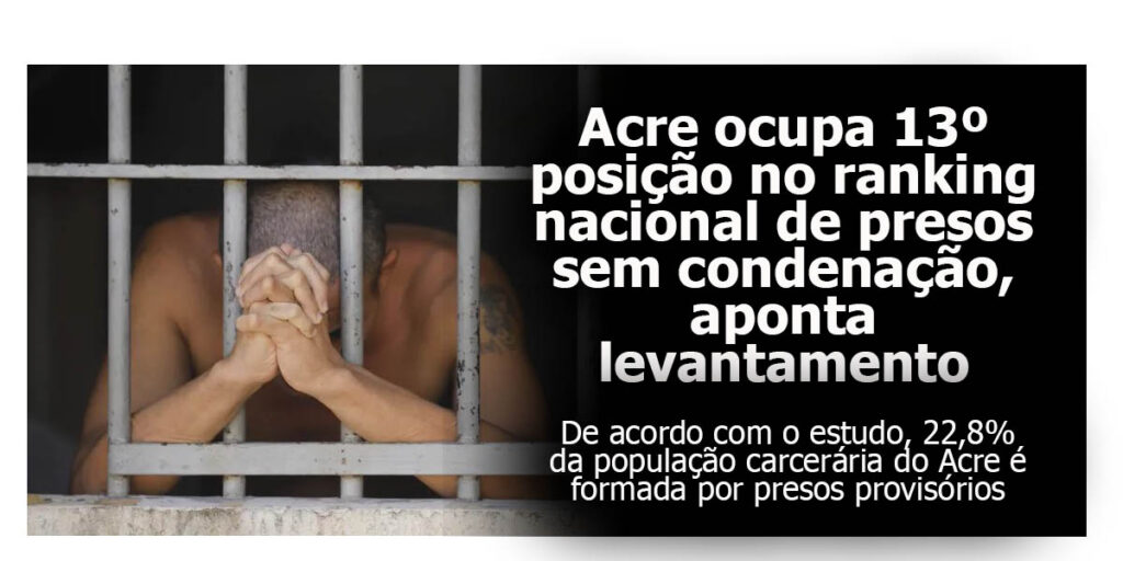De acordo com o estudo, 22,8% da população carcerária do Acre é formada por presos provisórios — pessoas que estão privadas de liberdade enquanto aguardam julgamento ou a conclusão do processo judicial.