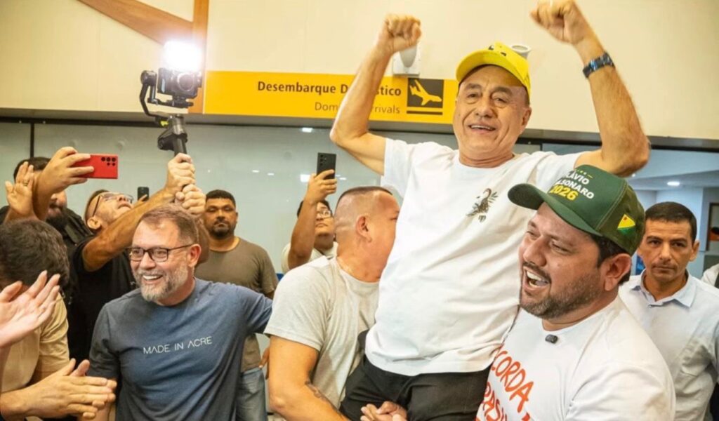 O prefeito de Rio Branco, Tião Bocalom, chegou à capital acreana na madrugada desta sexta-feira, 20, após viagem a Brasília, onde oficializou seu retorno ao PSDB. A chegada ocorreu no Aeroporto Internacional de Rio Branco e foi acompanhada por uma mobilização de aliados políticos, incluindo secretários municipais, servidores comissionados e integrantes da equipe da prefeitura.