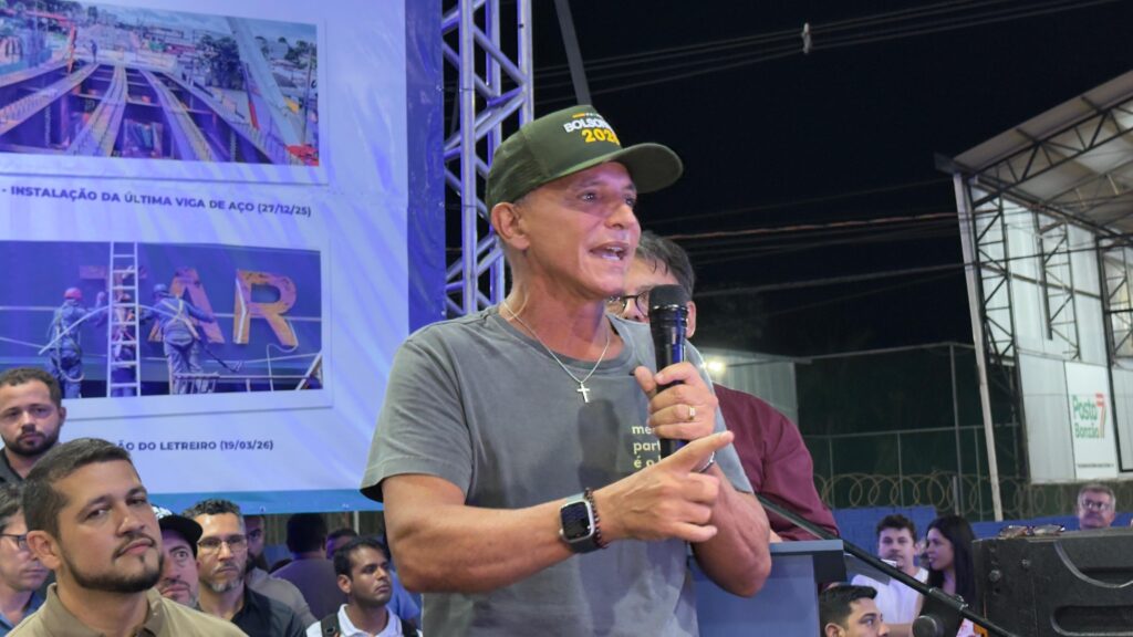 “Essa obra tem um padrinho. Esse padrinho chama-se Jair Messias Bolsonaro”, afirmou o parlamentar, ao destacar a origem dos recursos federais que possibilitaram a construção do viaduto.