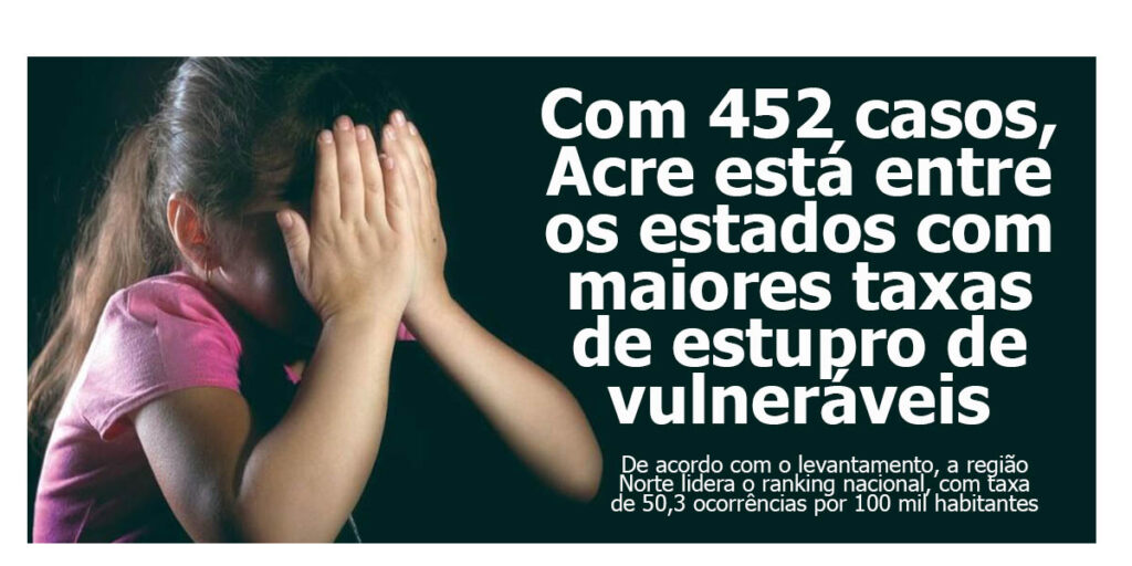 Ainda segundo o estudo, o Acre registrou um total de 452 casos de estupro de vulnerável em 2025, colocando-o entre os estados com maiores taxas de abusos sexuais de vulneráveis por 100 mil habitantes.