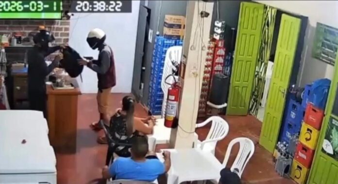 A ação criminosa foi flagrada pelas câmeras de segurança do estabelecimento e gerou momentos de tensão entre clientes e funcionários que estavam no local.