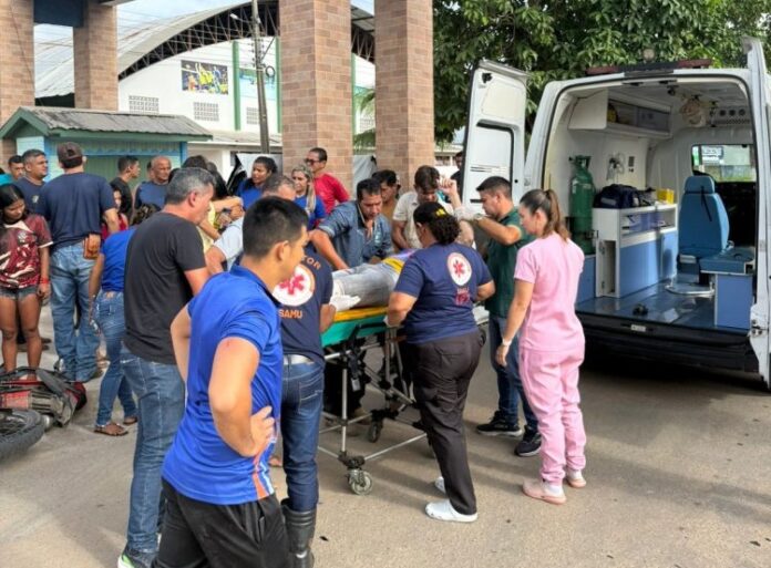 De acordo com informações apuradas no local, um incidente policial encontrou aglomeração de pessoas e o motociclista A.A.L., caído ao solo, consciente, mas com sinais visíveis de fratura na perna esquerda, compatível com fratura exposta. O passageiro da moto, A.W.L., sofreu apenas escoriações leves.