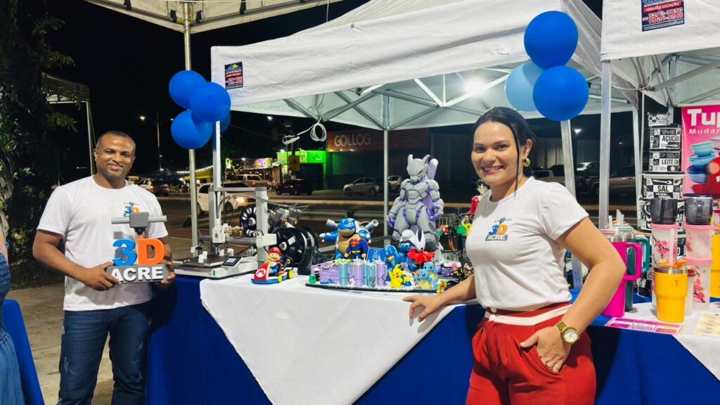 A criatividade aliada à tecnologia tem chamado a atenção de quem visita a Feira da Economia Solidária, no Lago do Amor, em Rio Branco. A empresa 3Dacre, especializada na impressão de miniaturas em 3D, está participando do evento até este domingo (29), apresentando ao público peças personalizadas que transformam ideias em realidade.