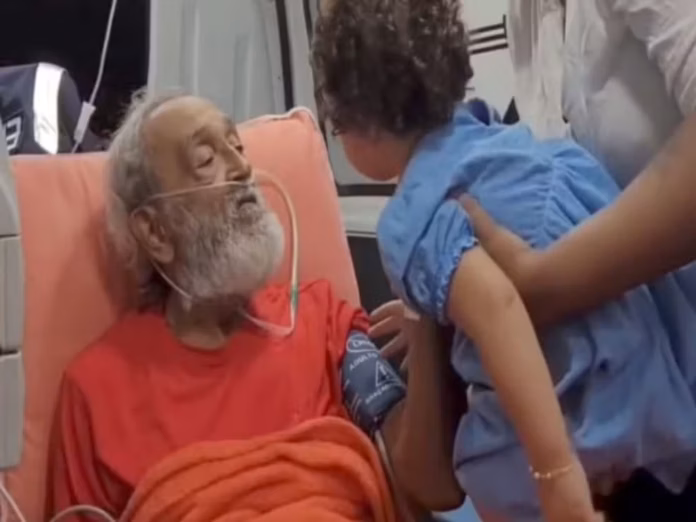 A família divulgou um vídeo da transferência de Raimundão. Nas imagens, familiares, amigos e conhecidos acompanham a saída dele no leito.