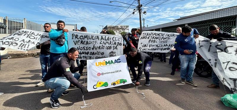 Durante a manifestação, os motoristas pedem diálogo com os vereadores e maior debate sobre o tema antes da aplicação definitiva das regras. O ato ocorre de forma pacífica em frente ao prédio do Legislativo municipal.