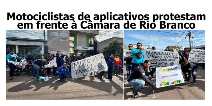 Na manhã desta terça-feira (17), motociclistas de aplicativos realizam uma manifestação pacífica em frente à Câmara Municipal de Rio Branco, na capital acreana. O ato foi convocado por representantes da categoria após a aprovação de um projeto de lei que pretende regulamentar o transporte por aplicativo no município.