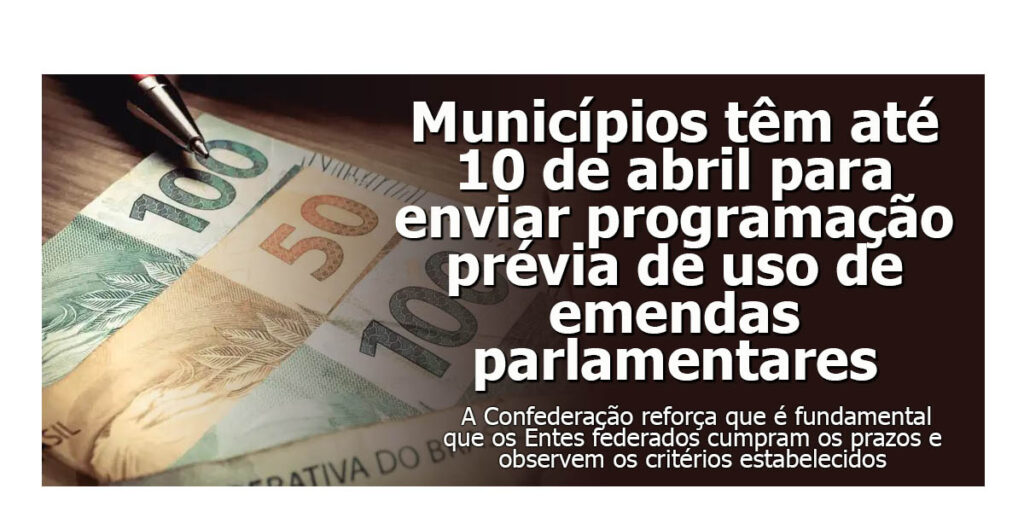 A Confederação Nacional de Municípios (CNM) está orientando prefeituras a redobrarem atenção com os prazos para execução de emendas parlamentares individuais na área de Assistência Social, este ano. O Fundo Nacional de Assistência Social (FNAS) divulgou que o envio das programações deve ser realizado até 10 de abril, enquanto o prazo para complementação das informações segue até 8 de maio. As emendas parlamentares podem ser destinadas tanto para custeio, por meio de incremento temporário, quanto para investimento, voltado à aquisição de bens.
