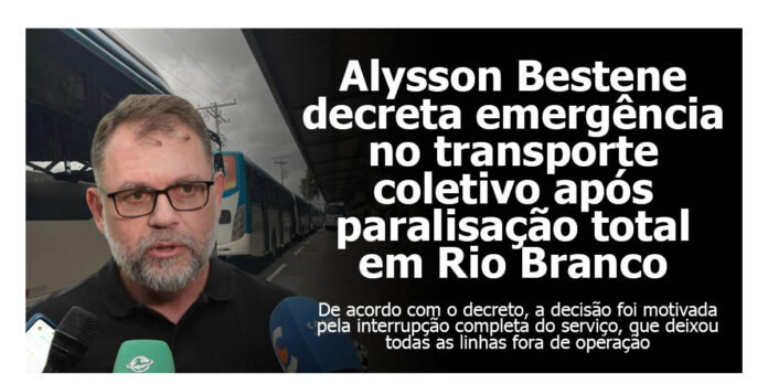O prefeito de Rio Branco, Alysson Bestene (PP) decretou situação de emergência no sistema de transporte coletivo urbano após a suspensão integral das linhas registrada nesta quarta-feira, 22. A medida foi formalizada por meio do Decreto nº 782/2026, com vigência inicial de 60 dias, prorrogáveis por igual período.
